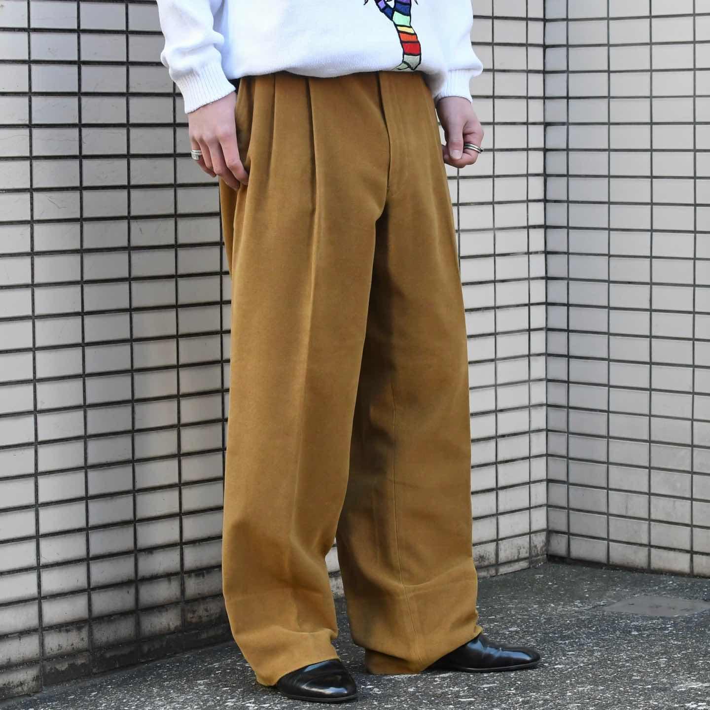 古着 ベロア スラックス タックパンツ ワイドパンツ マスタード ベロアパンツ