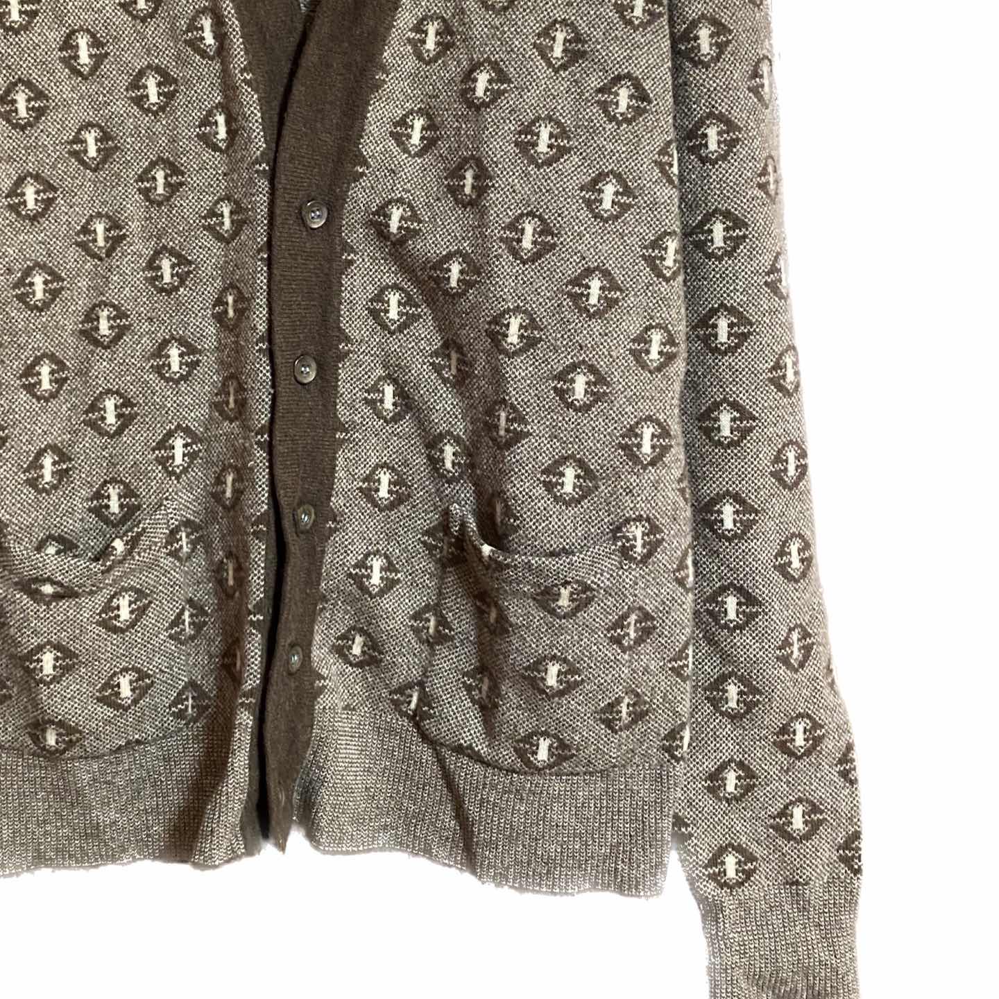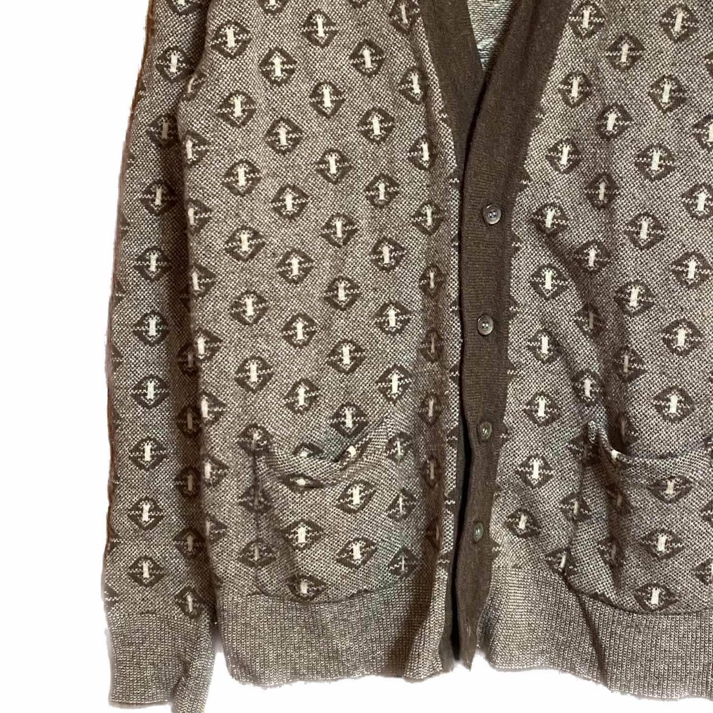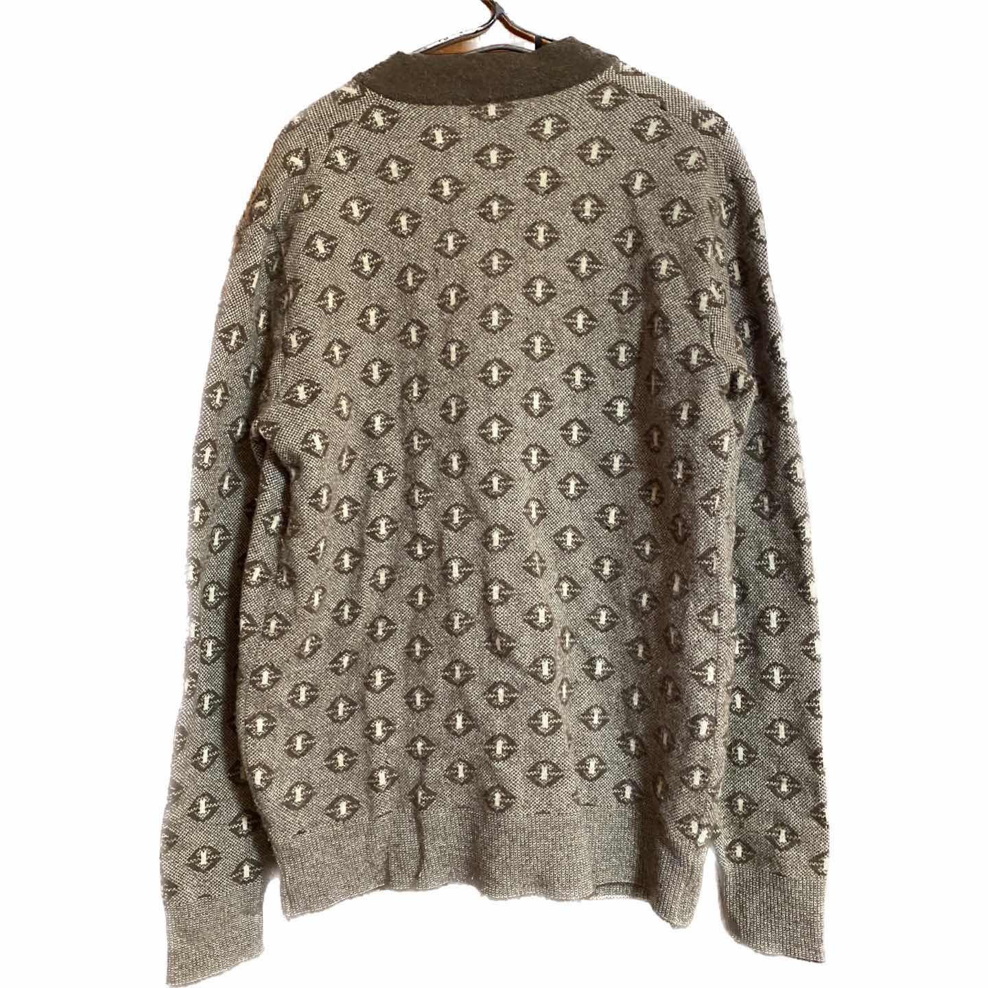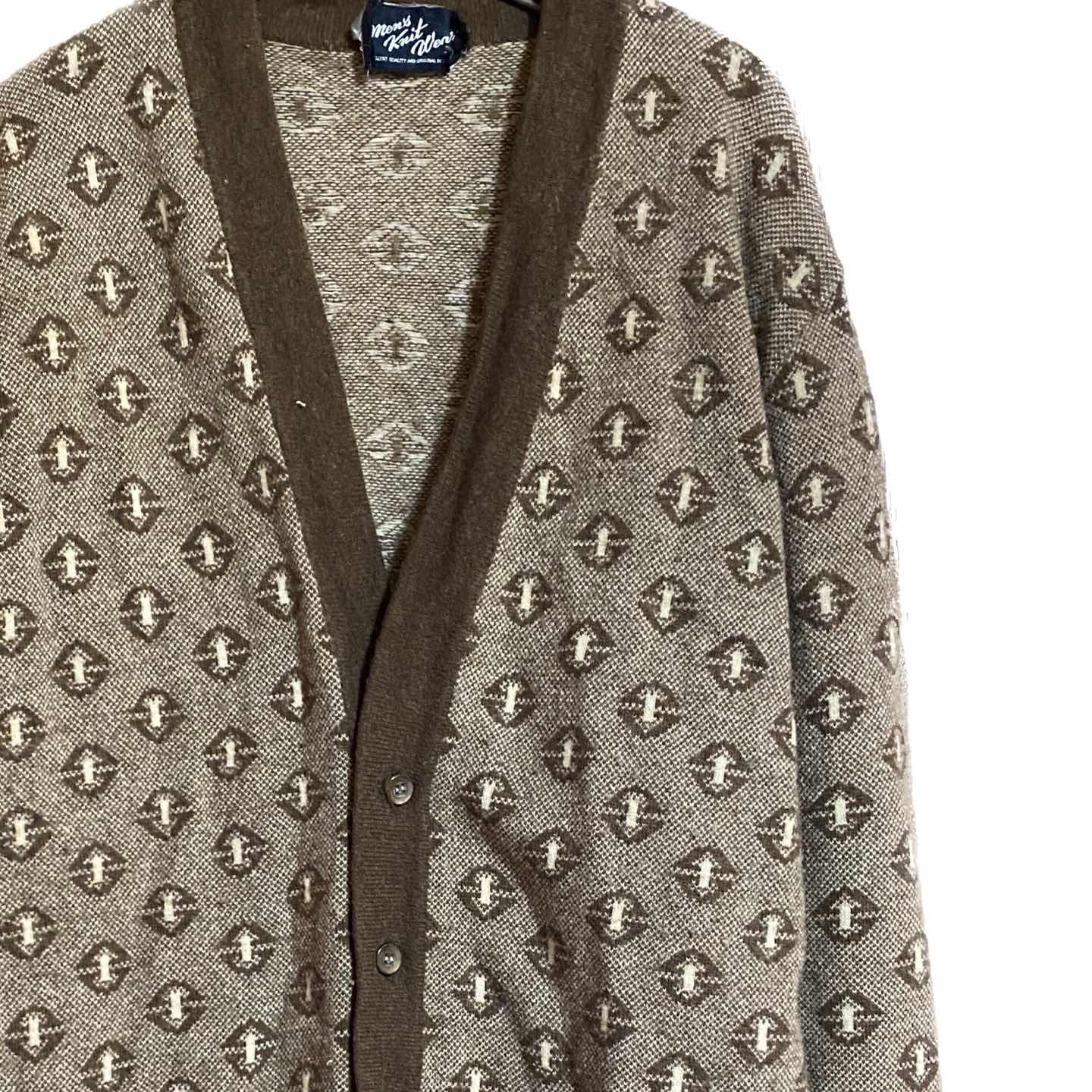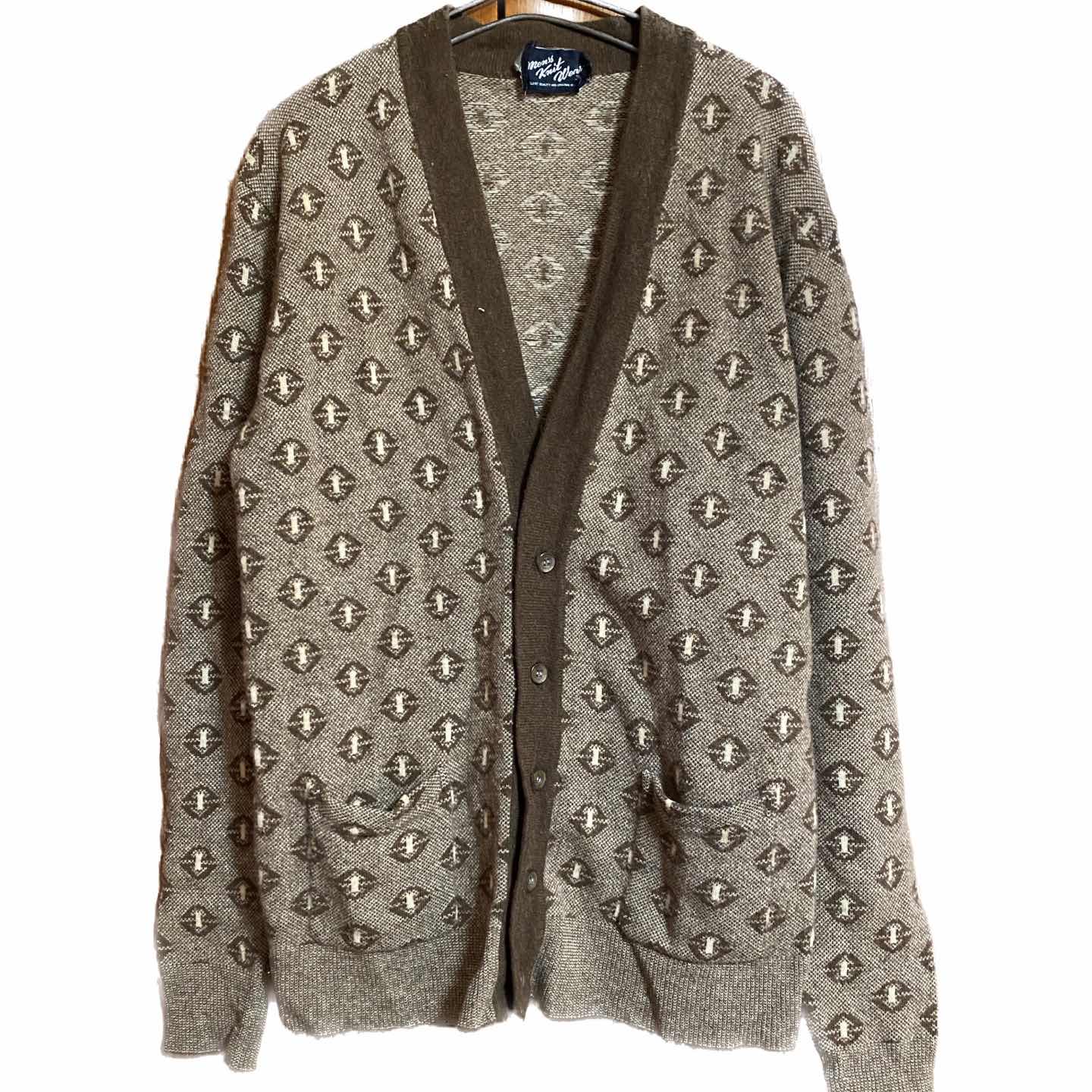 70s メリノウール 幾何学柄 カーディガン L