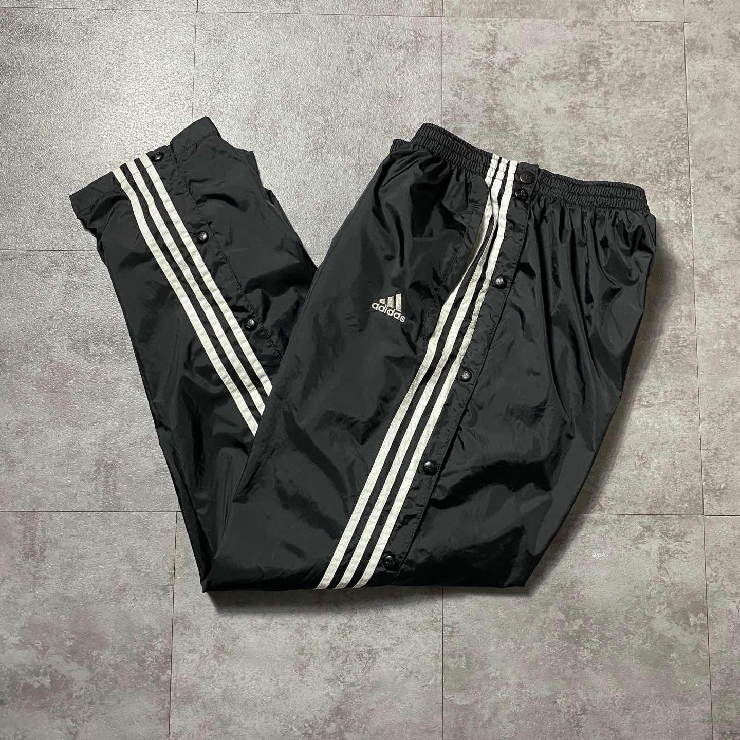 90's adidas アディダス 刺繍ロゴ サイドスナップ ナイロン トラックパンツ