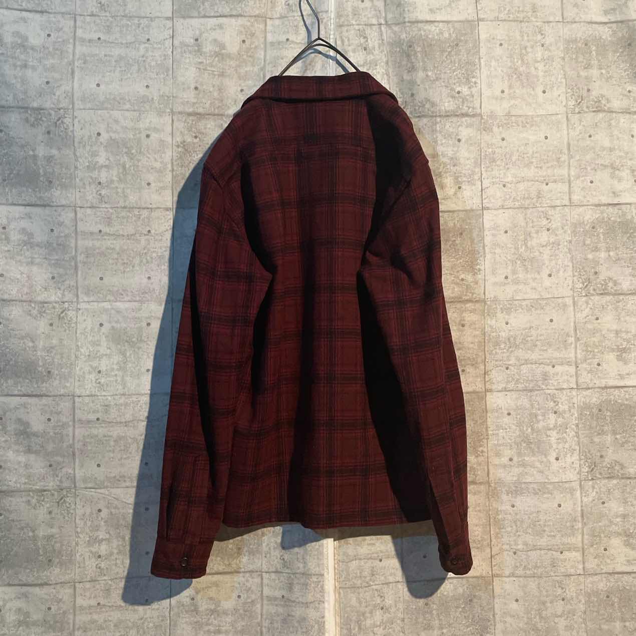アメリカの老舗ブランド PENDLETON(ペンドルトン) のウールシャツ。 上質なヴァージンウールを使用し、柔らかく軽いのにしっかりとした質感が特徴です。 深みのあるバーガンディ×ブラックのチェックは、 派手すぎず落ち着いた印象で、古着スタイルにもトラッドにも馴染む万能カラー。 一枚で着ても存在感があり、Tシャツの上から羽織るだけで雰囲気が出ます。 肩の落ち感や少しゆるめのシルエットが絶妙で、 デニムやチノ、スラックスなどどんなボトムスとも好相性。 「ただのネルシャツじゃない」って思わせてくれる、ペンドルトンらしい上質さがあります。 正直、自分も初めてこの色味を見たとき、 “この落ち着いた赤、古着でしか出せないな”と思って購入を決めました。 状態も良く、長く着られる1着です。