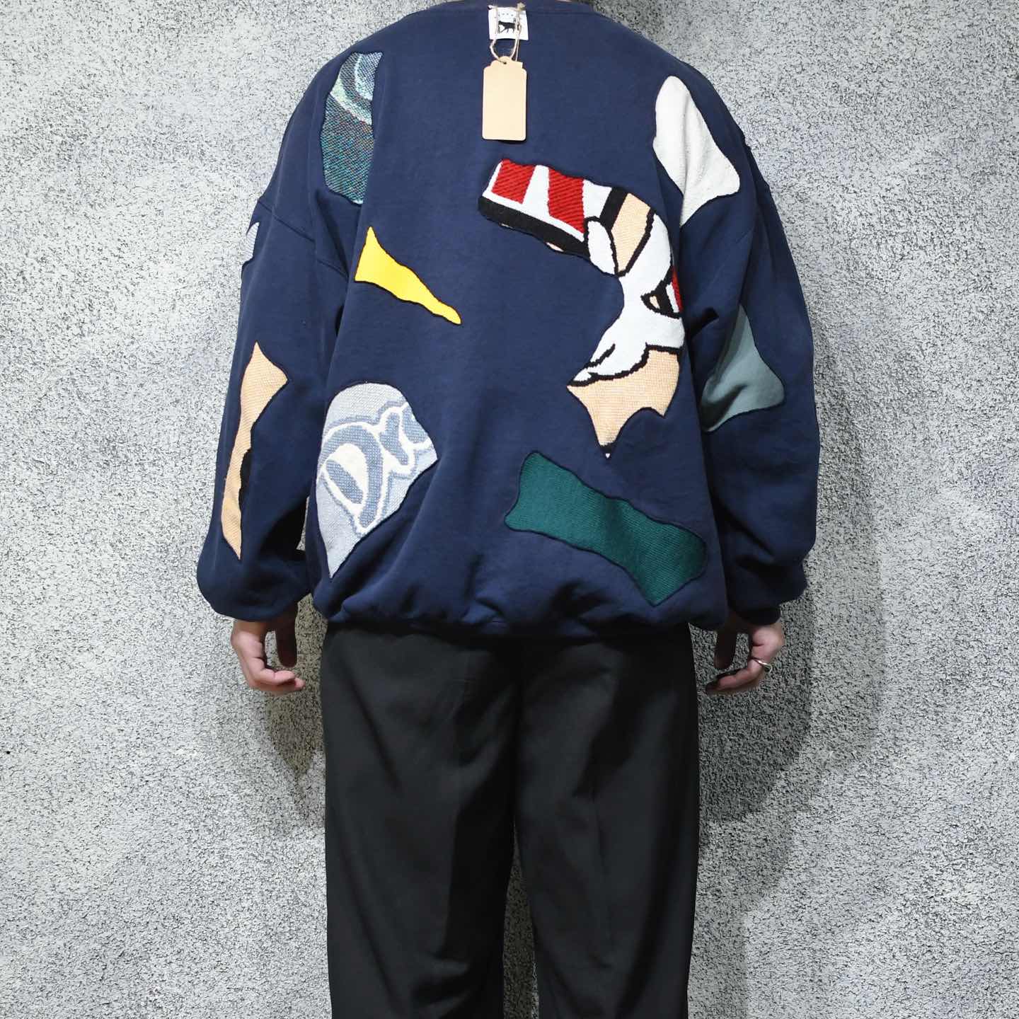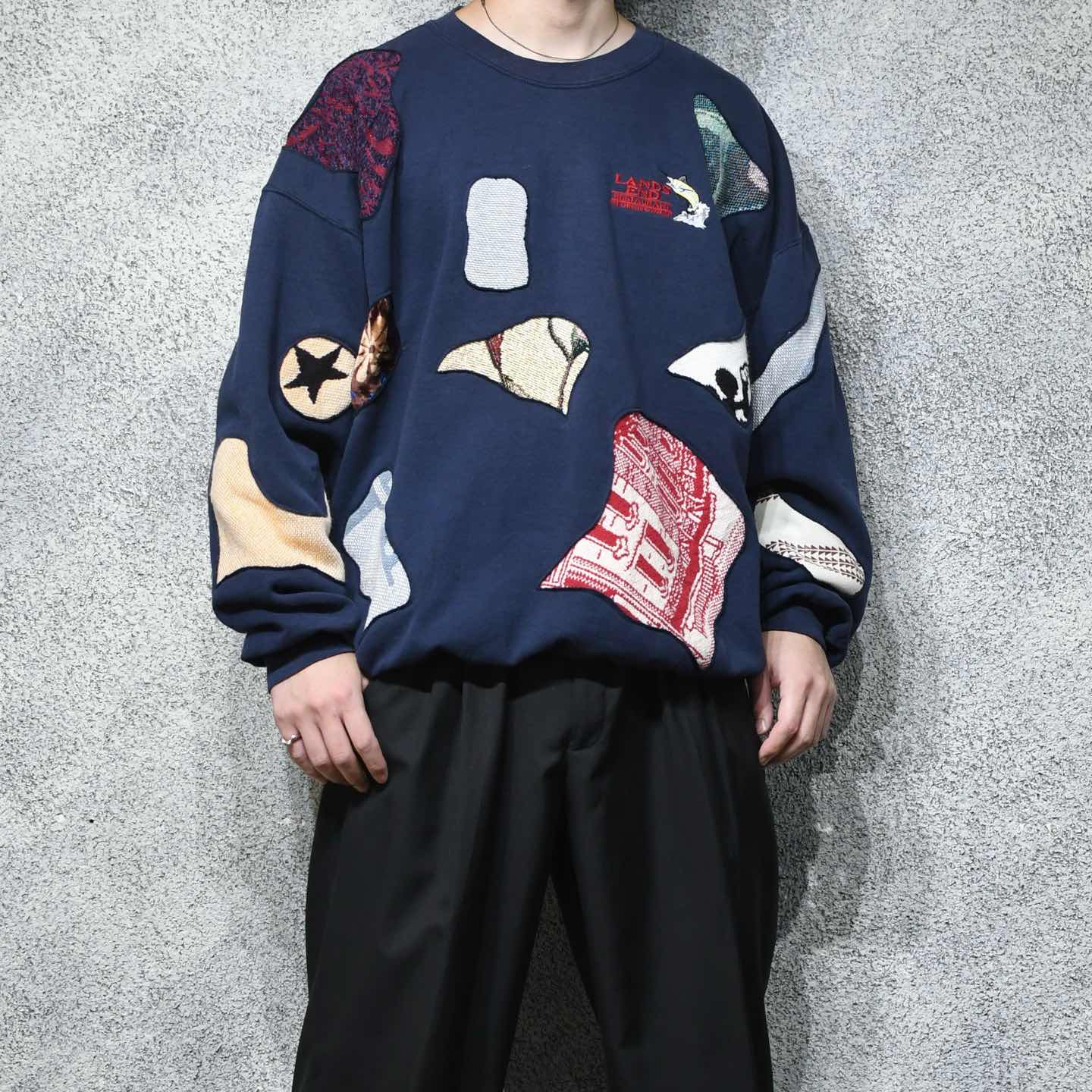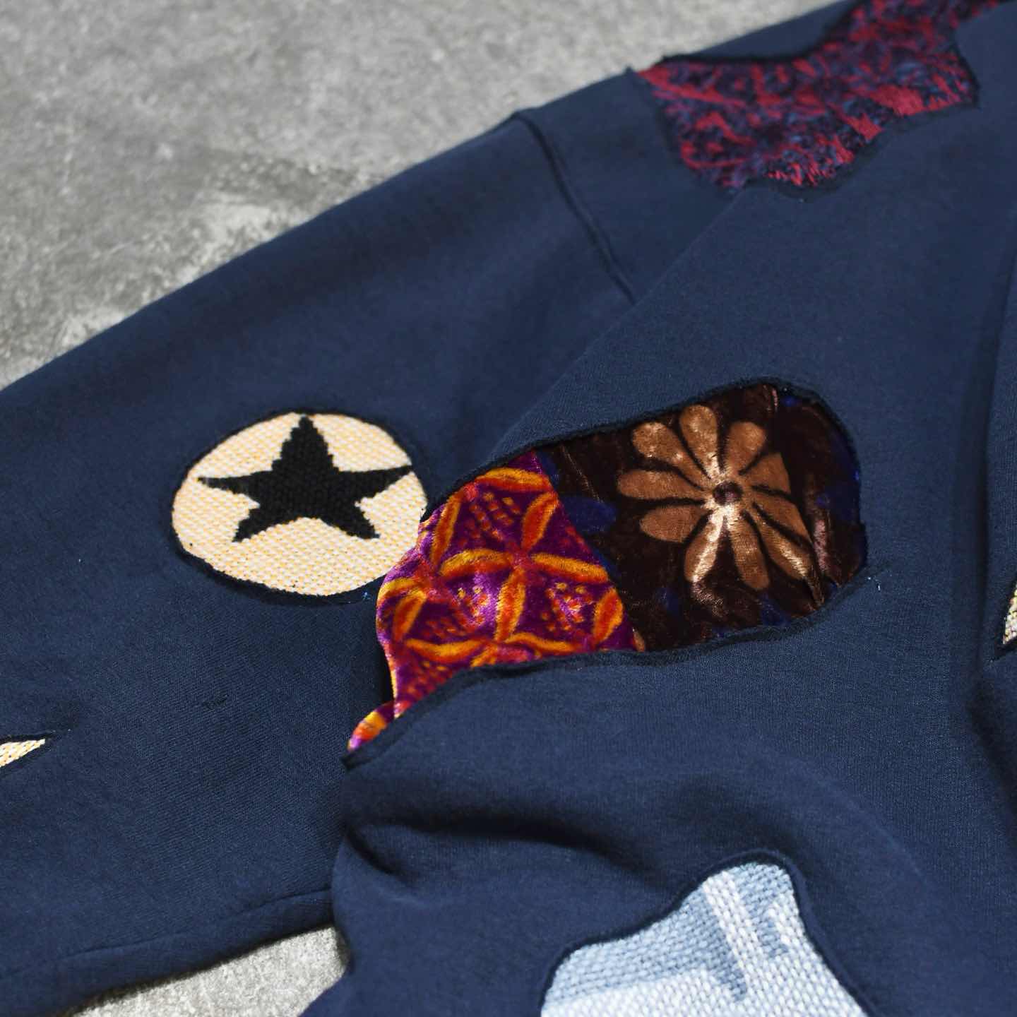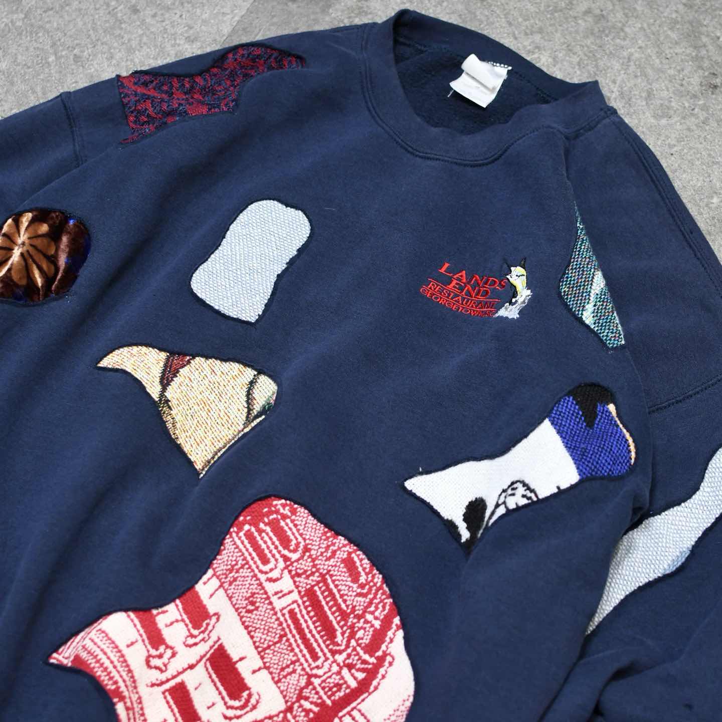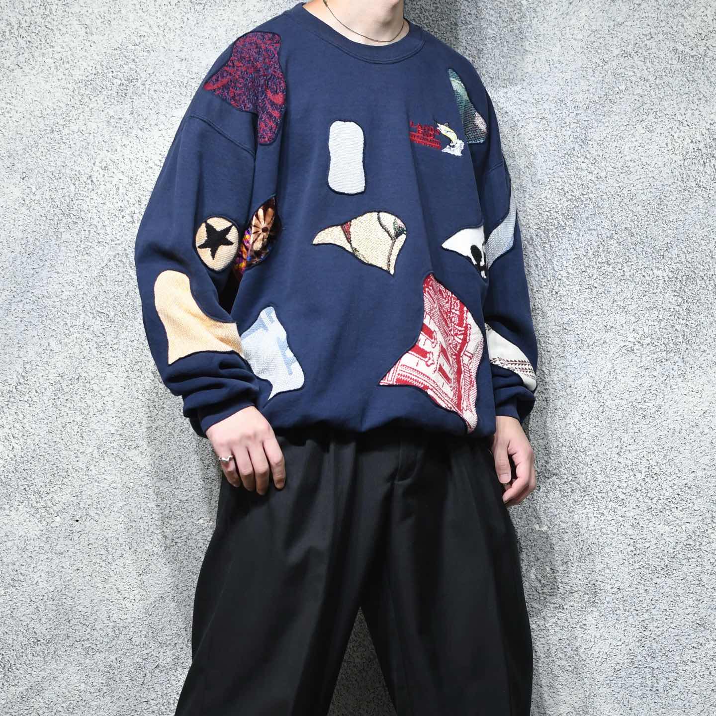 古着 リメイク ツギハギ ラグ スウェット トレーナー リメイク古着 ネイビー