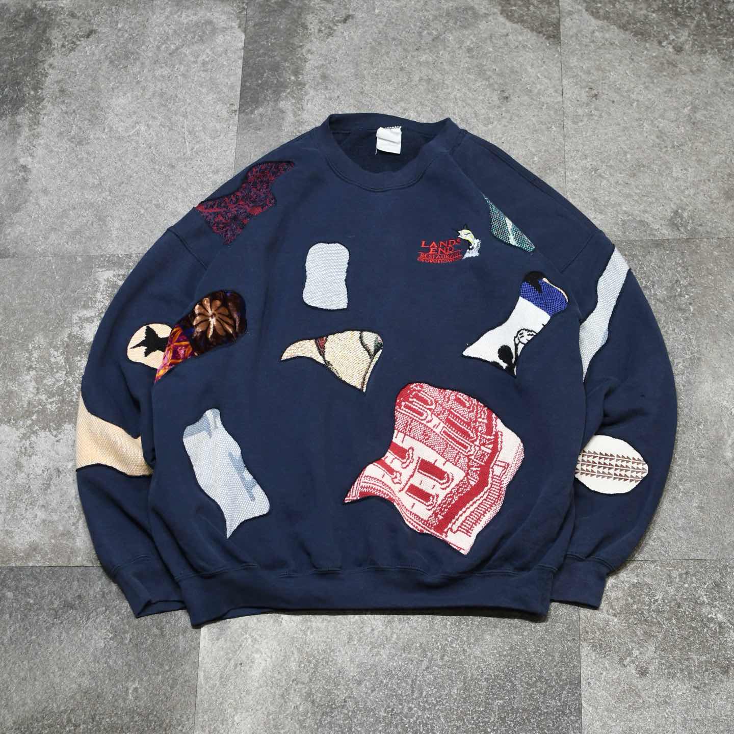 SIZE:XL 着丈75cm 肩幅74cm 身幅72cm 袖丈60cm fabric/cotton・poly 着用画像 177cm/64kg スウェットに様々なラグを差し込んだリメイク。 リメイク特有のインパクトだけでなく、 素材としたスウェットはシルエットまで厳選した 逸品です。 スタイリングの幅が広がる季節、 よりコーデを組むのが楽しくなるようなスウェットです。 ※アームにピンホールあり。 ※撮影状況により、実物と多少色が異なる場合が ございます。 ※古着を取り扱っているため、気づかない汚れや ほつれ等がある場合がございます。 ※サイズは着用感で選んでおり、 表記サイズではございません。 表記サイズは説明欄の最初に記載しております。 古着 オーバーサイズ old vintage ヴィンテージ used 80's 90's アメリカ古着 ユーロ古着 POLO RALPH LAUREN Eddie Bauer OLD GAP LANDS' END ランズエンド LLBean エルエルビーン オールドギャップ エディーバウアー ラルフローレン ブルックスブラザーズ Brooks Brothers 紺色 などがお好きな方 #vintage #オーバーサイズ #old #used #90s #80s #古着 #ヴィンテージ #アメリカ古着 #ユーロ古着 #LLBean #エルエルビーン #EddieBauer #エディーバウアー #oldgap #オールドギャップ #LANDSEND #ランズエンド #NAUTICA #ノーティカ #ラルフローレン #POLORALPHLAUREN #ブルックスブラザーズ #BrooksBrothers #リメイク #リメイク古着 #スウェット #トレーナー #ラグ #パッチワーク