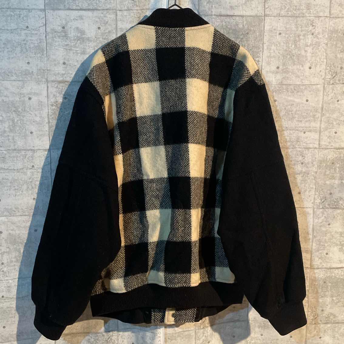 McGREGOR(マックレガー)のウールスタジャン。 ブラック×ホワイトの大判チェックが印象的な一着です。 しっかりとしたウール素材で保温性が高く、秋冬のメインアウターとして活躍します。 胸元にはブランドロゴ入りのワッペン、ポケットにはレザー調の切り替えが施され、 ヴィンテージ感と上品さを兼ね備えたデザイン。 クラシックな雰囲気ながらもシルエットは現代的で、 デニムやチノパンとの相性も抜群です。 実際に着用すると、程よくボリュームがありながら重すぎず、 インナーをスウェットやフーディにするだけで簡単に「雰囲気のあるアメカジスタイル」が完成します。 特に、「大人っぽい古着スタジャンを探している」「チェック柄で差をつけたい」という方にはぴったり。 McGREGORらしい上質な仕立てで、長く愛用できる一着です。