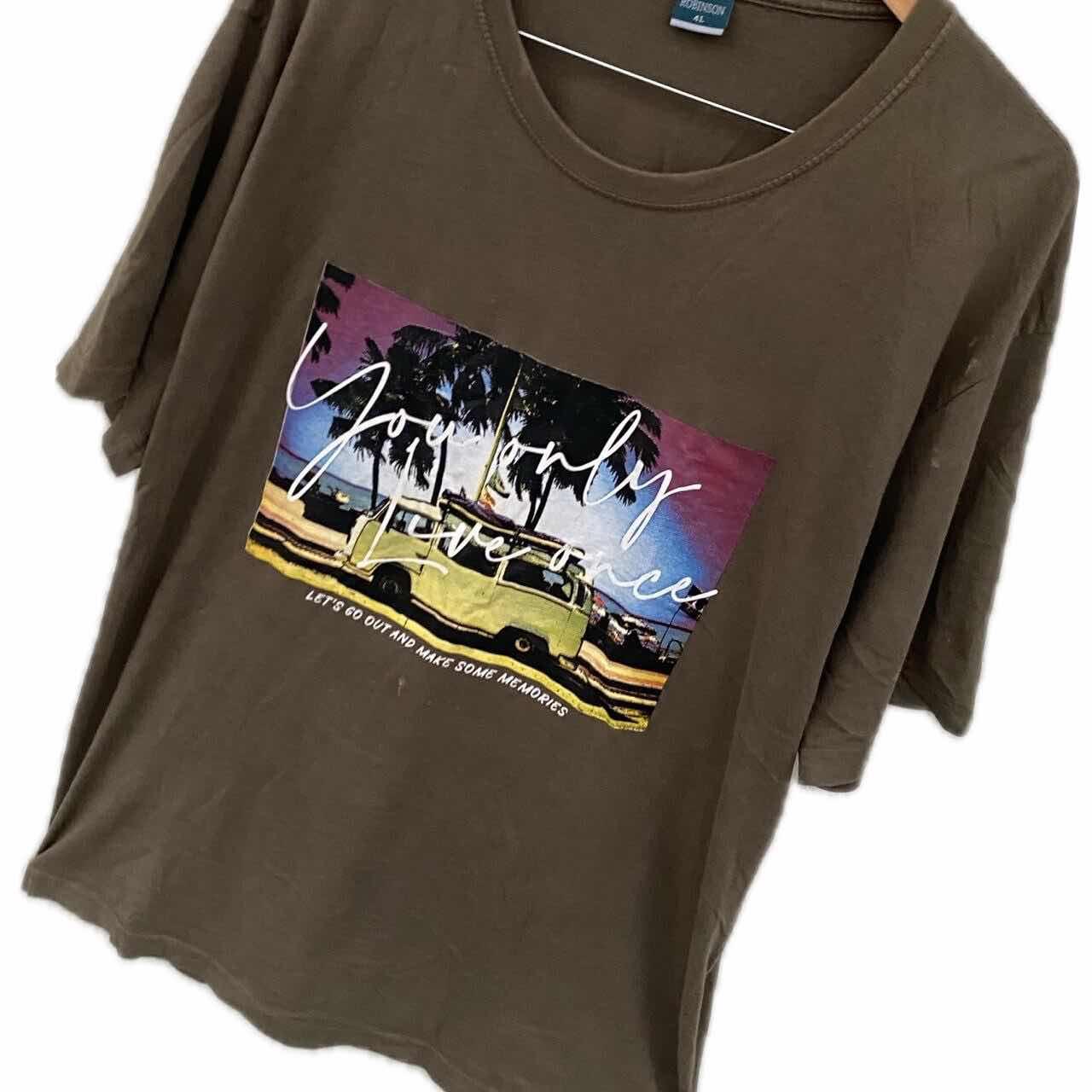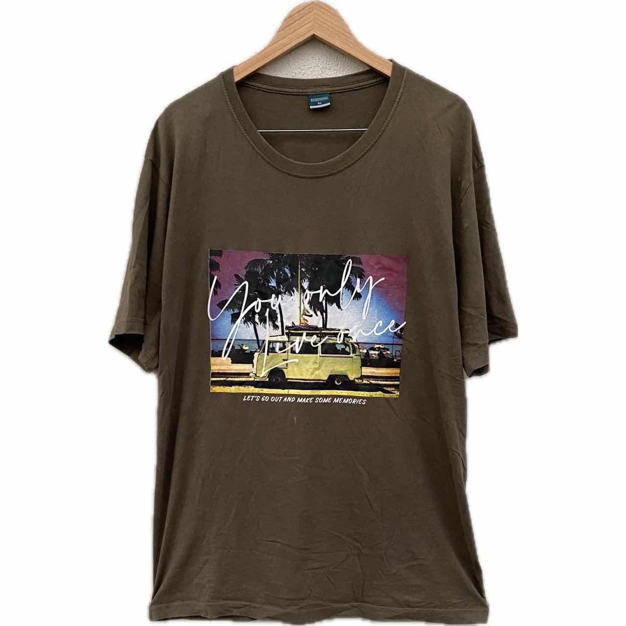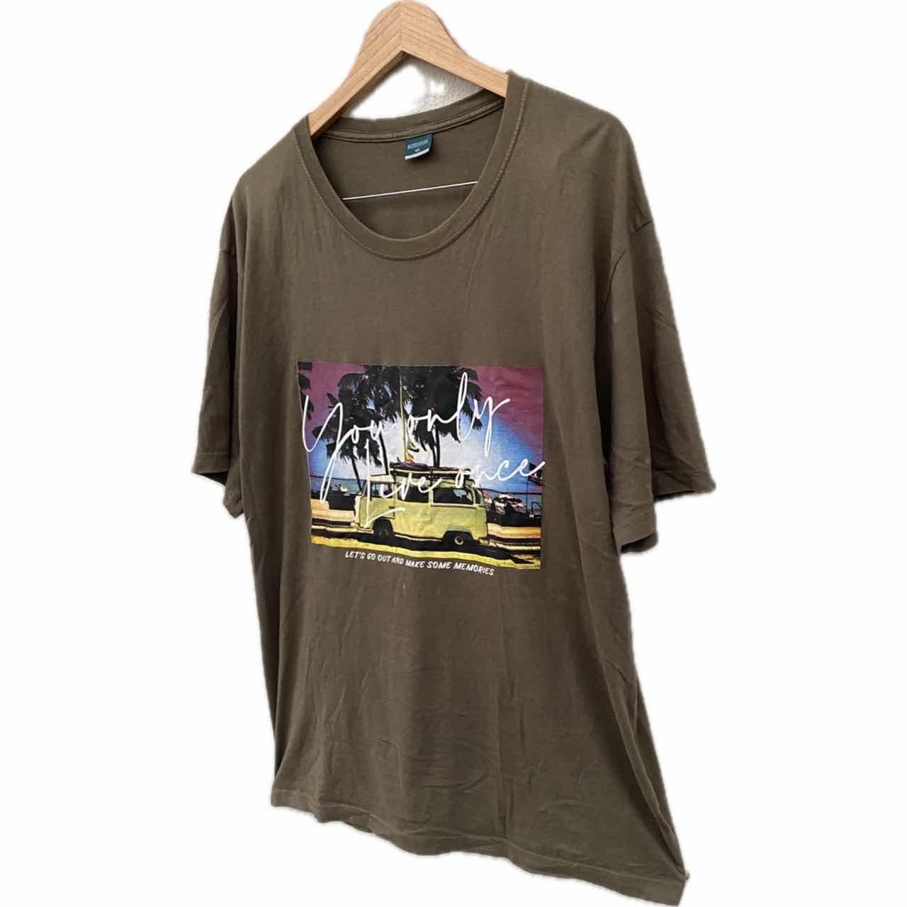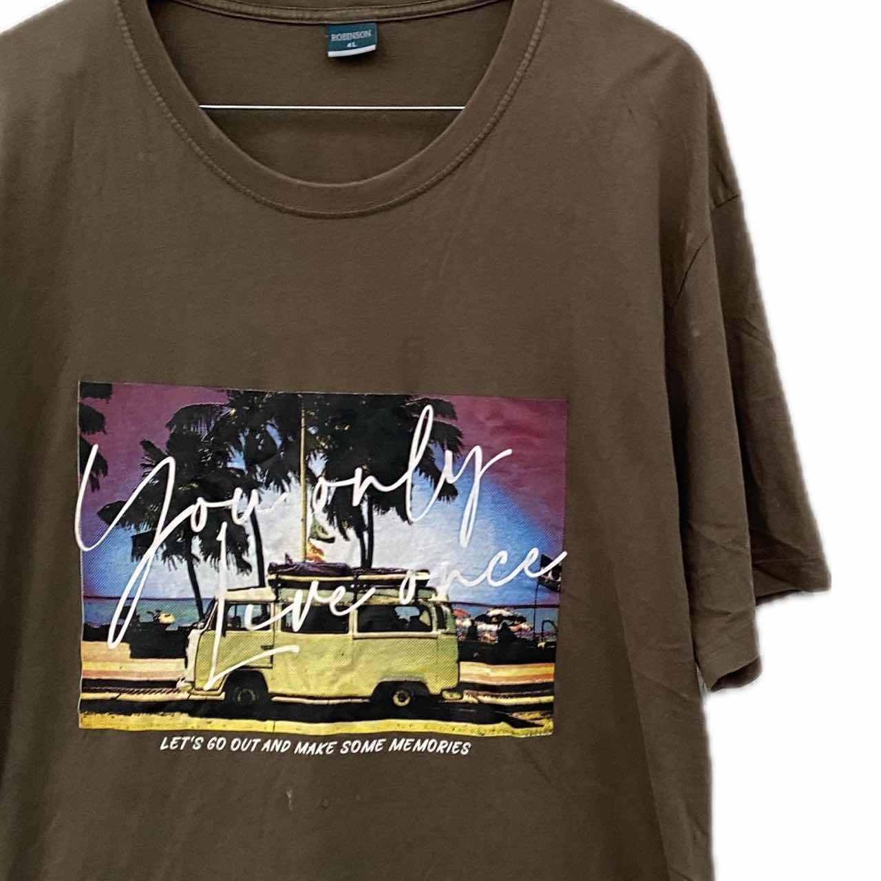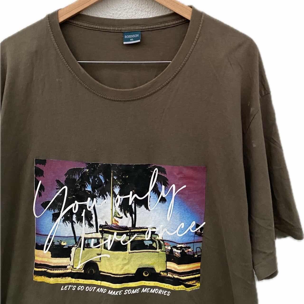 00s ROBINSON 激レア フロントプリント singleタグ T 4L 年中活躍するTシャツだからこそ、確かなものをY2k robinson singleタグ、フロントプリントビックサイズに、レアカラーダークネスカーキが、カッコいい、1着、お好きなスタンスで楽しめて、さらに、ビックサイズは、ハーパンの季節きたら、こなれ感半端ないです、参考に、 ▷color◁ ダークカーキ写真参照 ※ブラウザで異なる場合ありますがかなり実物には、近づけてます、 ▷size◁ 平置き片面採寸【㎝表記】 表記size 4L表記よってF 着丈/83 身幅/68 肩幅/67DS 袖丈 /43 DSは袖はハンガー採寸 ※多少の誤差は理解下さい 170/Mジャスト体型の私が着て、✔️参考に ジャスト オーバーサイズ ビックサイズ✔︎ 【素材】 cotton98 ウレタン2これによりシワに強い、 【状態】 良好 検品、洗濯、検品で、3回チェックして発送しますので、ご安心して、お買い