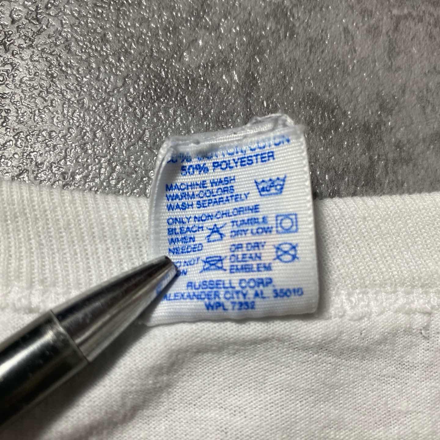 ◯ Explanation ◯ LOUISVILLE CARDINALS プリントTシャツ。 フロントにはアメリカの名門大学「ルイビル大学」のカレッジロゴと、インパクト抜群のカーディナルヘッド。 この手のカレッジ物の中でも、ここまでグラフィック強い個体はなかなか出ません。 さらにバックには「SHIVELY SPORTING GOODS」の企業ロゴ入り。 フロントは王道カレッジ、バックはローカルショップ感ある企業プリントという、古着らしい“両面美味しい”1着。 ボディはRUSSELL ATHLETICのMADE IN U.S.A。 50/50ボディ特有の柔らかい着心地と、少しフェードしたホワイトの雰囲気が抜群。 サイズ感もゆったりしており、今っぽいストリートスタイルにしっかりハマるシルエット。 1枚で主役になるグラフィック+バックプリント付き、間違いなく“雰囲気で着れる”グッドレギュラー。 ○Size○ 表記→L ・着丈71 ・身幅62 ・肩幅59 ・袖丈16 (cm) ○Color○ ・ホワイト ○Material○ ・50%コットン 50%ポリエステル ○Condition○ ・左袖縫い目に一部ほつれ箇所あり ○Caution○ 当店で取り扱っている商材は全て『古着』となっております。 そのため、多少の状態難(ほつれ、傷、汚れ、リブの伸び、使用感、擦れ、色あせ、etc)がある場合がございます。 新品同様の完璧なお品物をお求めの方は当店でのお買い物を控えて頂きますよう宜しくお願いします。 また、購入された商品に関しましては、購入日時から起算して『72時間以内に』発送手続きの方を取らせて頂きます。 お急ぎの場合は購入前に当店オンラインストアの方にお問い合わせ頂きますよう宜しくお願いします。 26/612