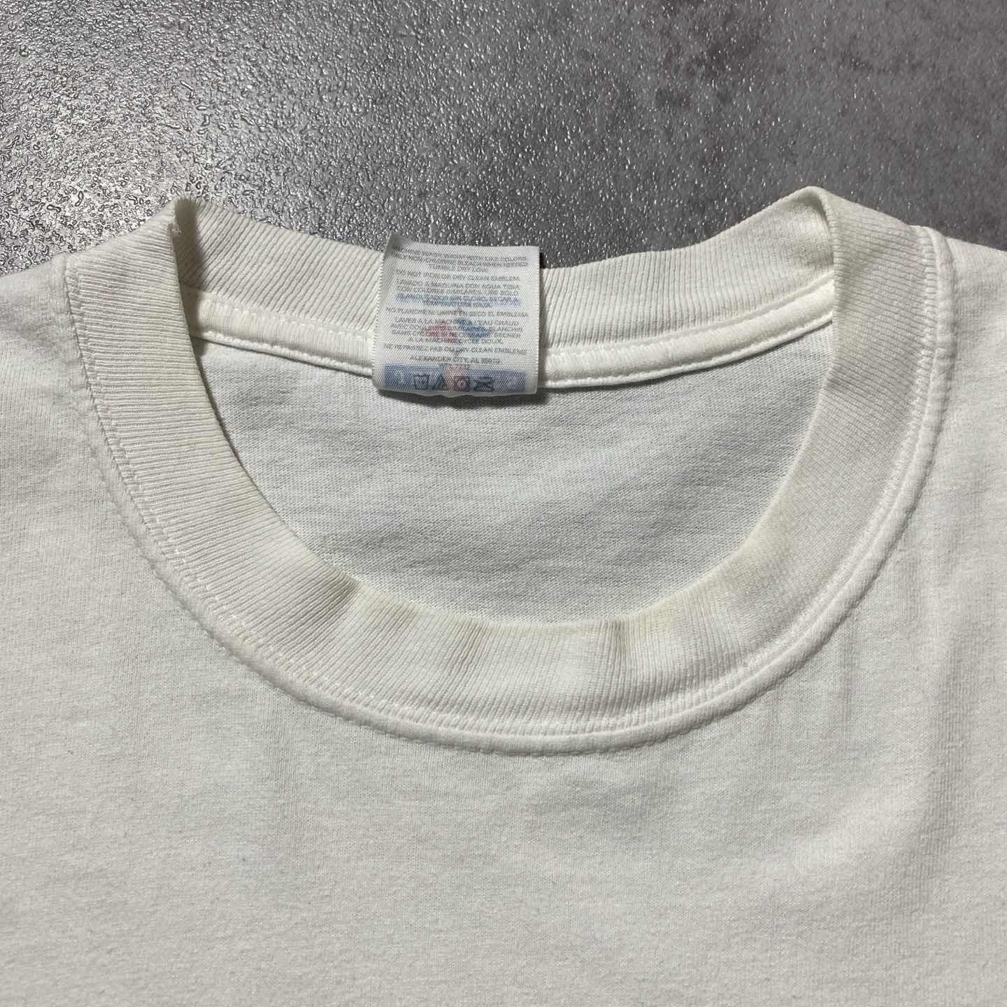 ○Size○ 表記→XL ・着丈72 ・身幅57 ・肩幅53 ・袖丈23 (cm) ○Color○ ・ホワイト ○Material○ ・100%コットン ○Condition○ ・裾先一部ダメージあり ○Caution○ 当店で取り扱っている商材は全て『古着』となっております。 そのため、多少の状態難(ほつれ、傷、汚れ、リブの伸び、使用感、擦れ、色あせ、etc)がある場合がございます。 新品同様の完璧なお品物をお求めの方は当店でのお買い物を控えて頂きますよう宜しくお願いします。 また、購入された商品に関しましては、購入日時から起算して『72時間以内に』発送手続きの方を取らせて頂きます。 お急ぎの場合は購入前に当店オンラインストアの方にお問い合わせ頂きますよう宜しくお願いします。 26/595
